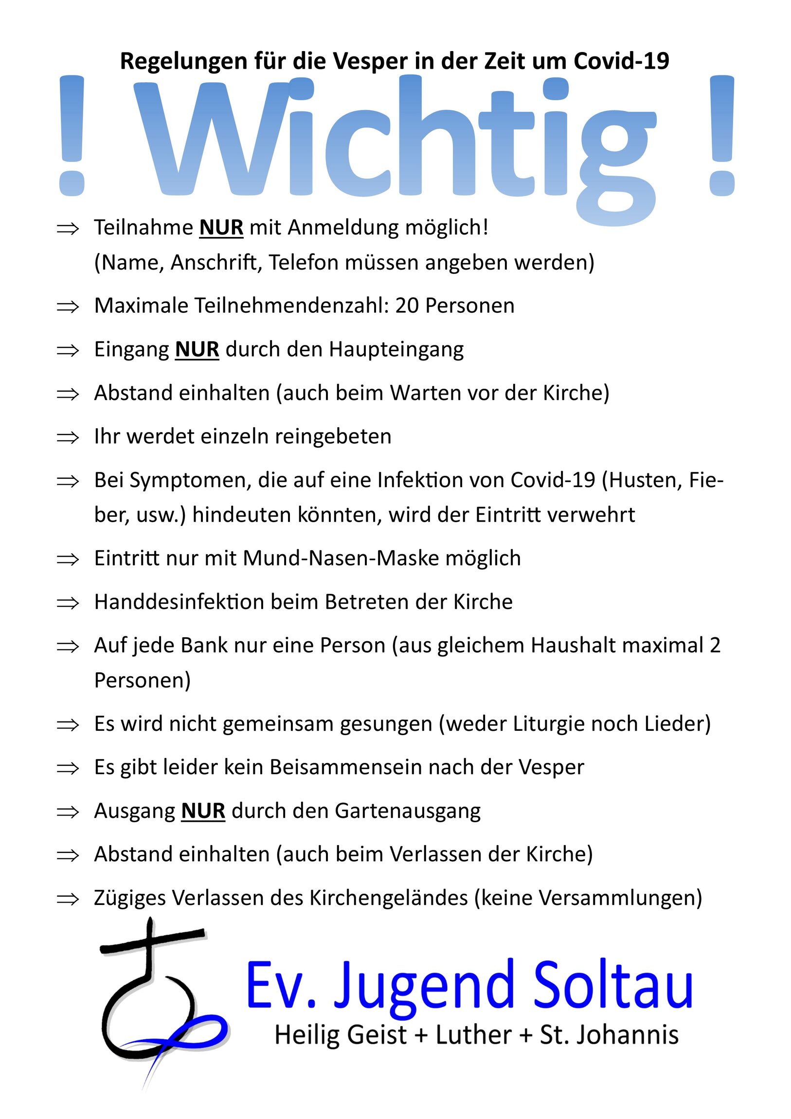 Es ist soweit und wir dürfen auch wieder die Vesper gemeinsam feiern. Allerdings zu etwas ungewohnten Bedingungen und mit anderen Formen. Wir sind sehr gespannt, wie es sein wird und freuen uns auf dich!