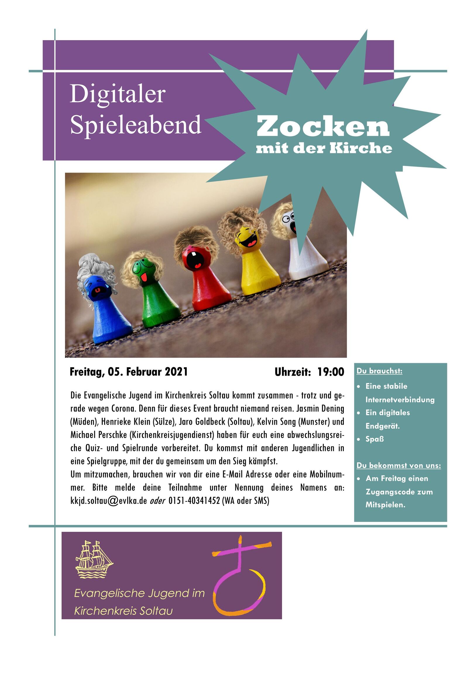 Es handelt sich bei diesem Angebot um eine Aktion der Evangelischen Jugend im Kirchenkreis Soltau. Mehr Informationen kannst du bei Kirchenkreisjugendwart Michael Perschke erhalten!