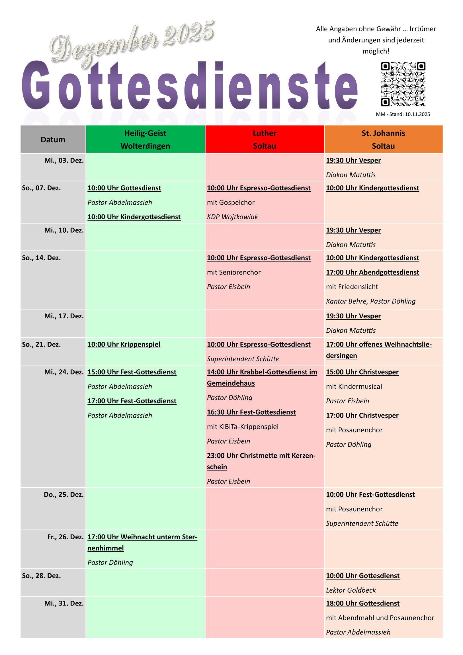Gottesdienstplan Soltau